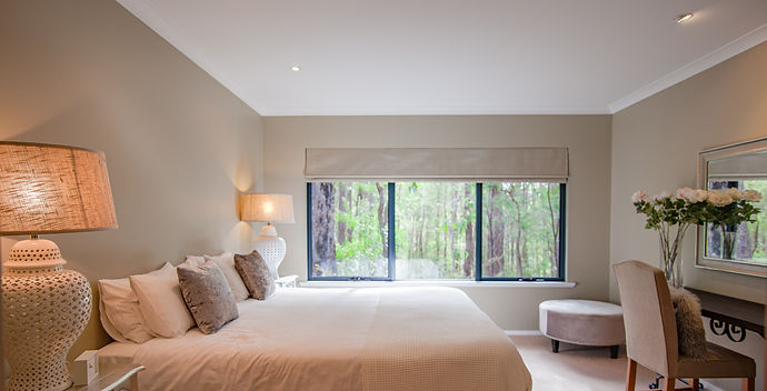 The Chalet can accommodate a maximum of six people in three generously sized bedrooms. The luxurious master bedroom boasts a king-size bed, spacious wardrobe and large ensuite bathroom with double basins, separate standing shower and bath-tub. The two queen bedrooms offer luxurious furnishings, ample wardrobe space and share a well-appointed bathroom.The bathrooms are all equipped with under-floor heating, hairdryers and luxurious local Cape Lavender hand and shower gels.